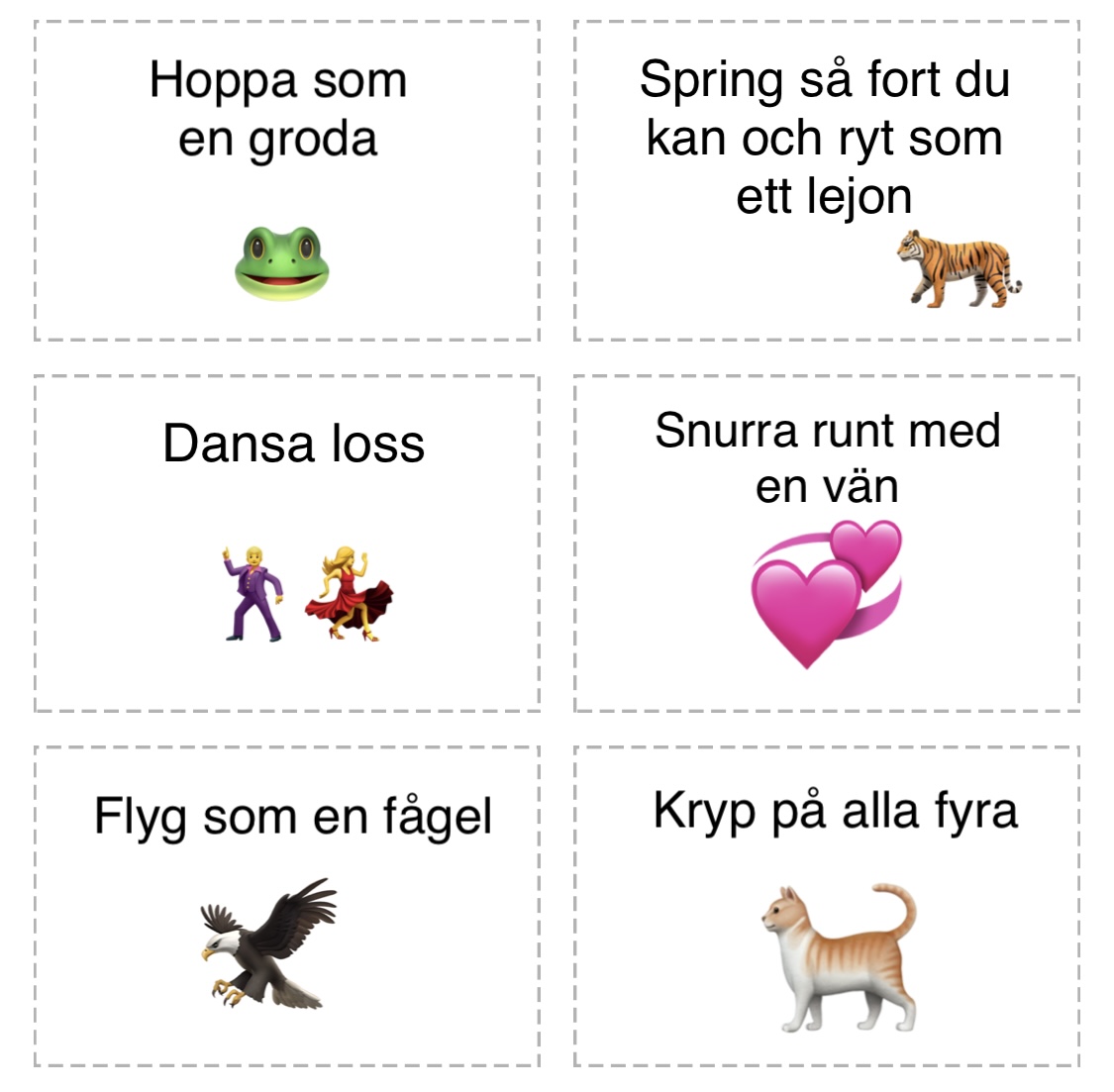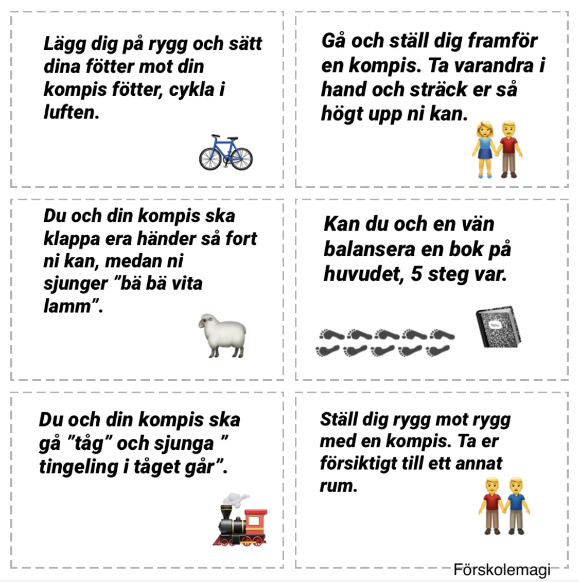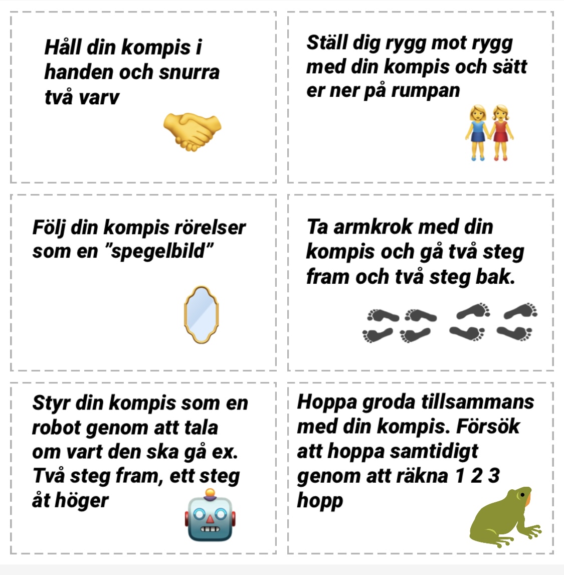 Uppdragskort-Samarbete/rörelse 18 st kort. Färdiga uppdrag att ladda ner, klippa ut och använda.