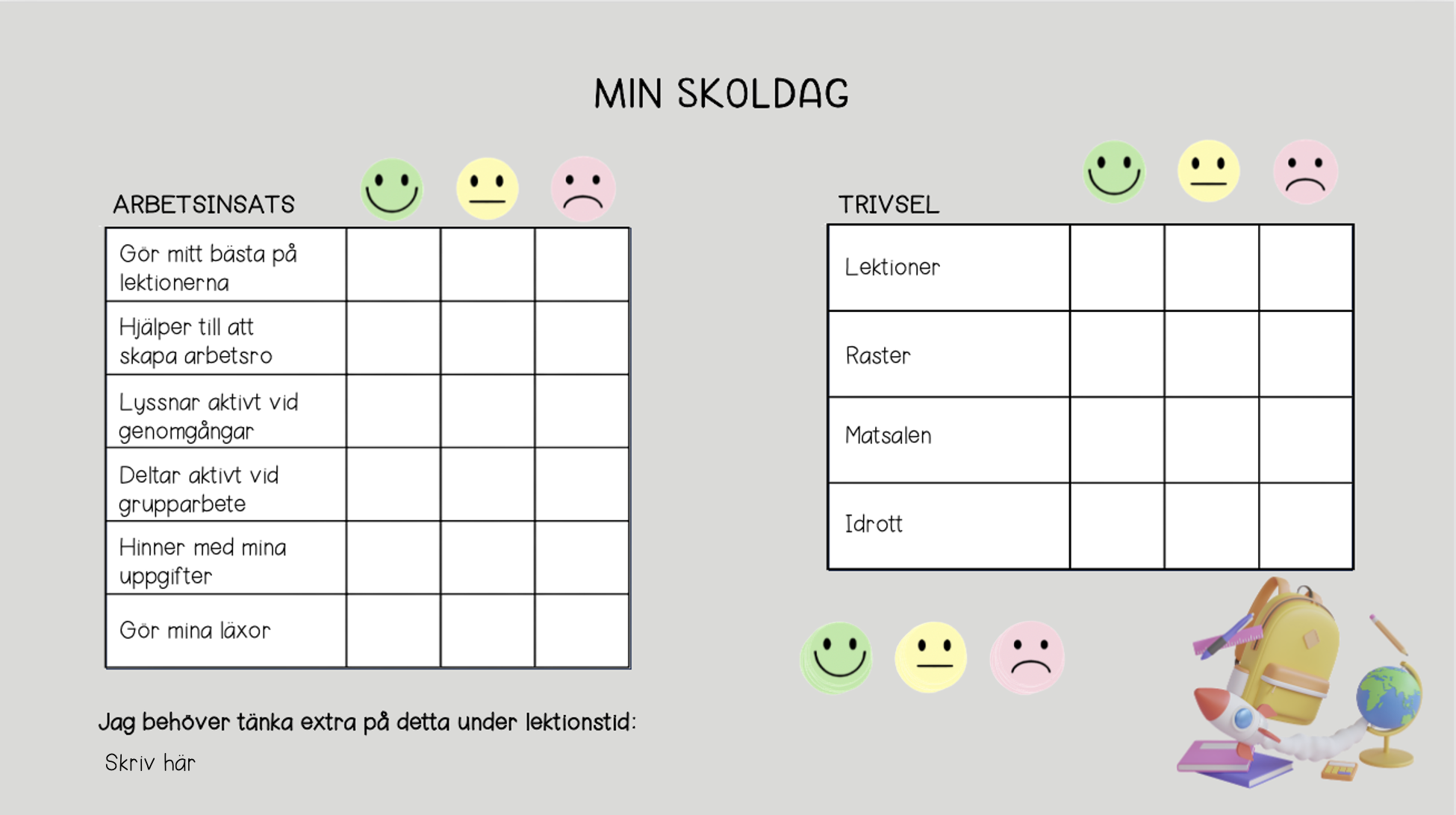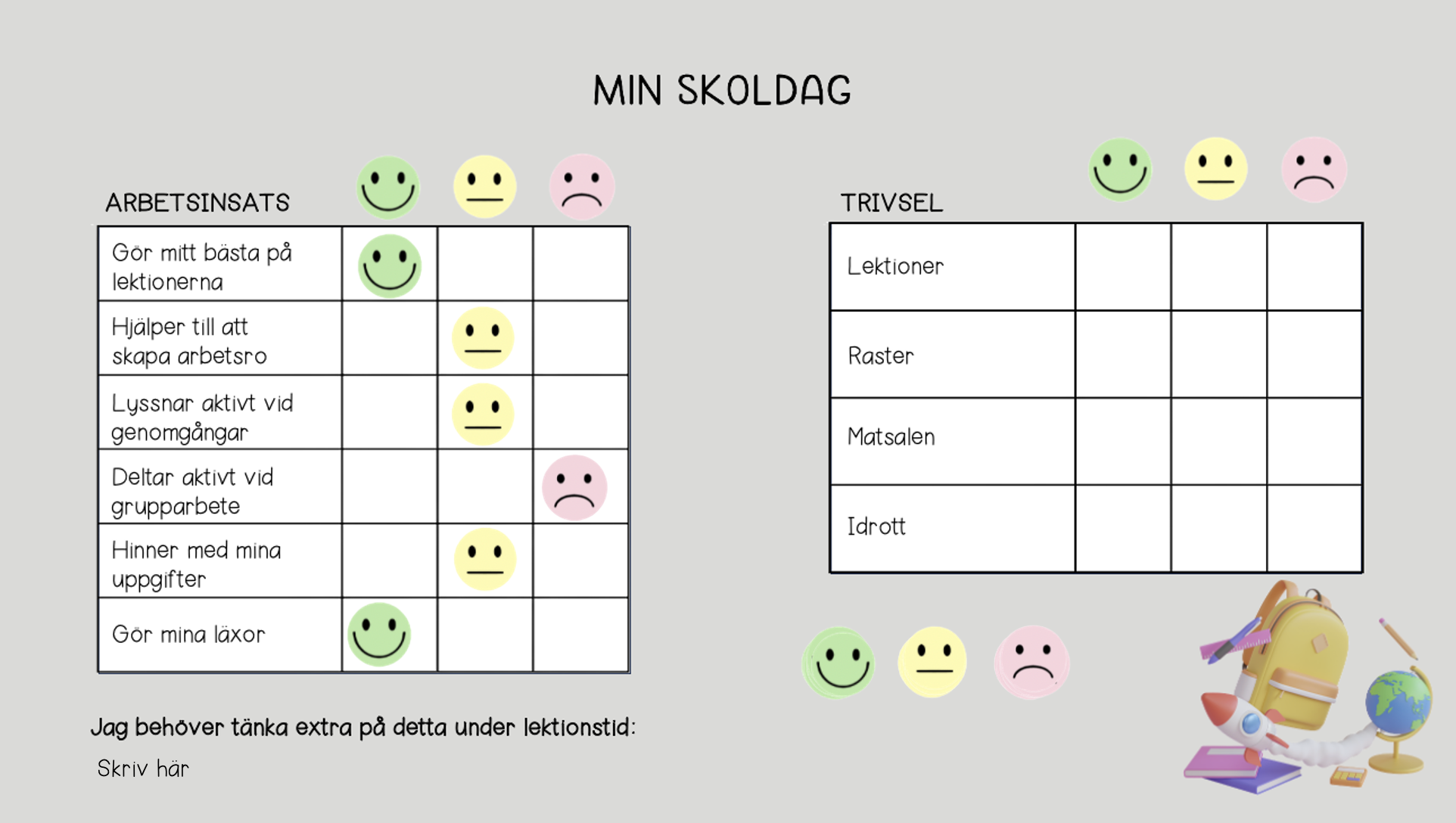 Reflekterar över sin skoldag (placerar smileys)