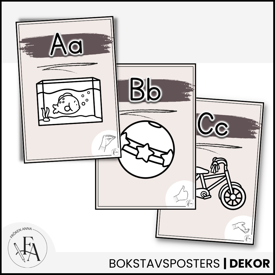 Väggalfabet i tema natural med  TAKK (tecken som stöd). Alfabetet levereras som A4 och A5.