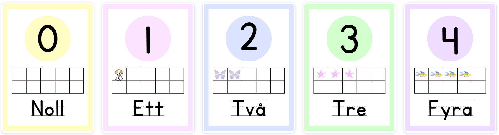 40 sidor med tal, veckodagar och månader i pastellfärger Innehåll Väggskylt med talen 0-10 i 4 olika modeller Veckodagar (måndag-söndag) Månader (januari-december)
