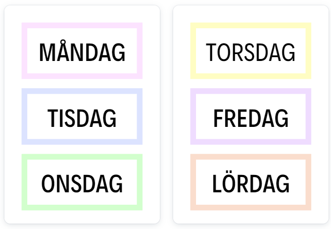 Veckodagar (måndag-söndag)