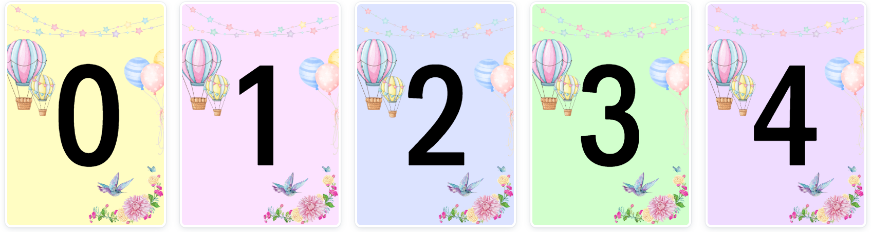 Väggskylt: siffror/tal 0-10, veckodagar & månader (pastellfärger)