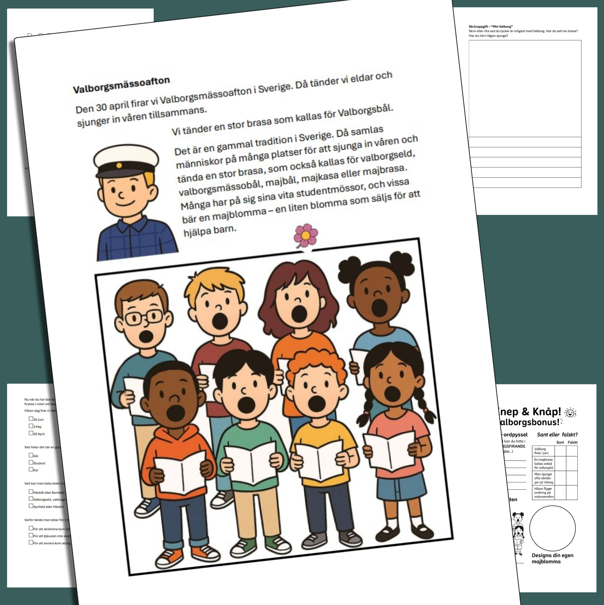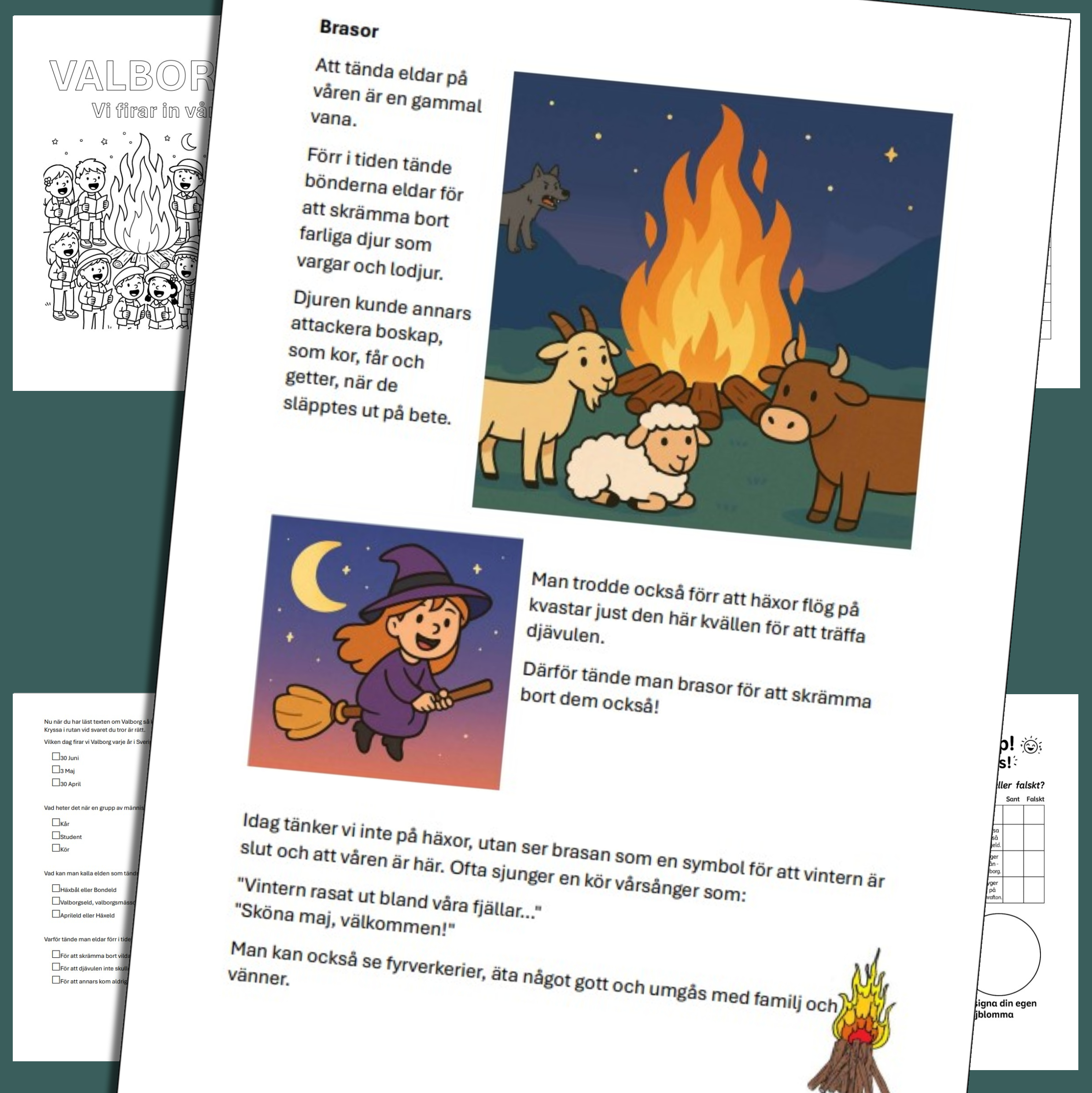 Perfekt att använda i helklass, mindre grupper eller som individuell uppgift. Materialet är enkelt att skriva ut och fungerar utmärkt som både introduktion, repetition eller som ett roligt temaarbete kring Valborg.