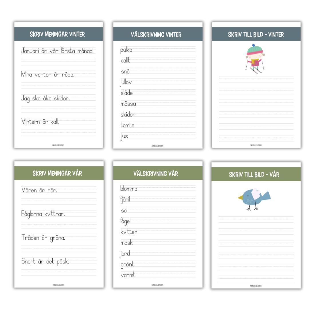 Välskrivning tema årstiderna 12 stenciler.