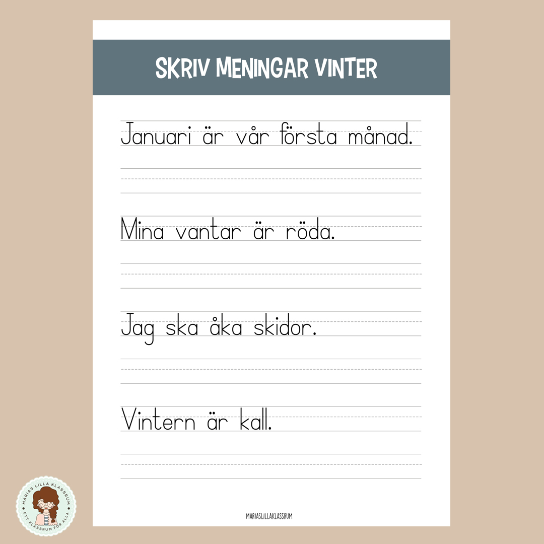 Skriv meningar vinter – fyra meningar att skriva av.
