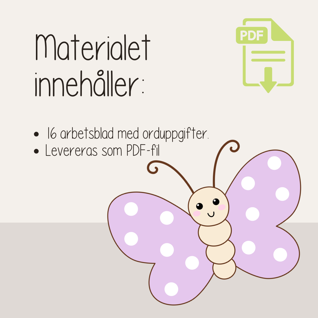 16 olika arbetsblad med uppgift att spåra ord med vårtema. Spåra ordet Färglägg bilden Skriv en mening Levereras som en PDF-fil