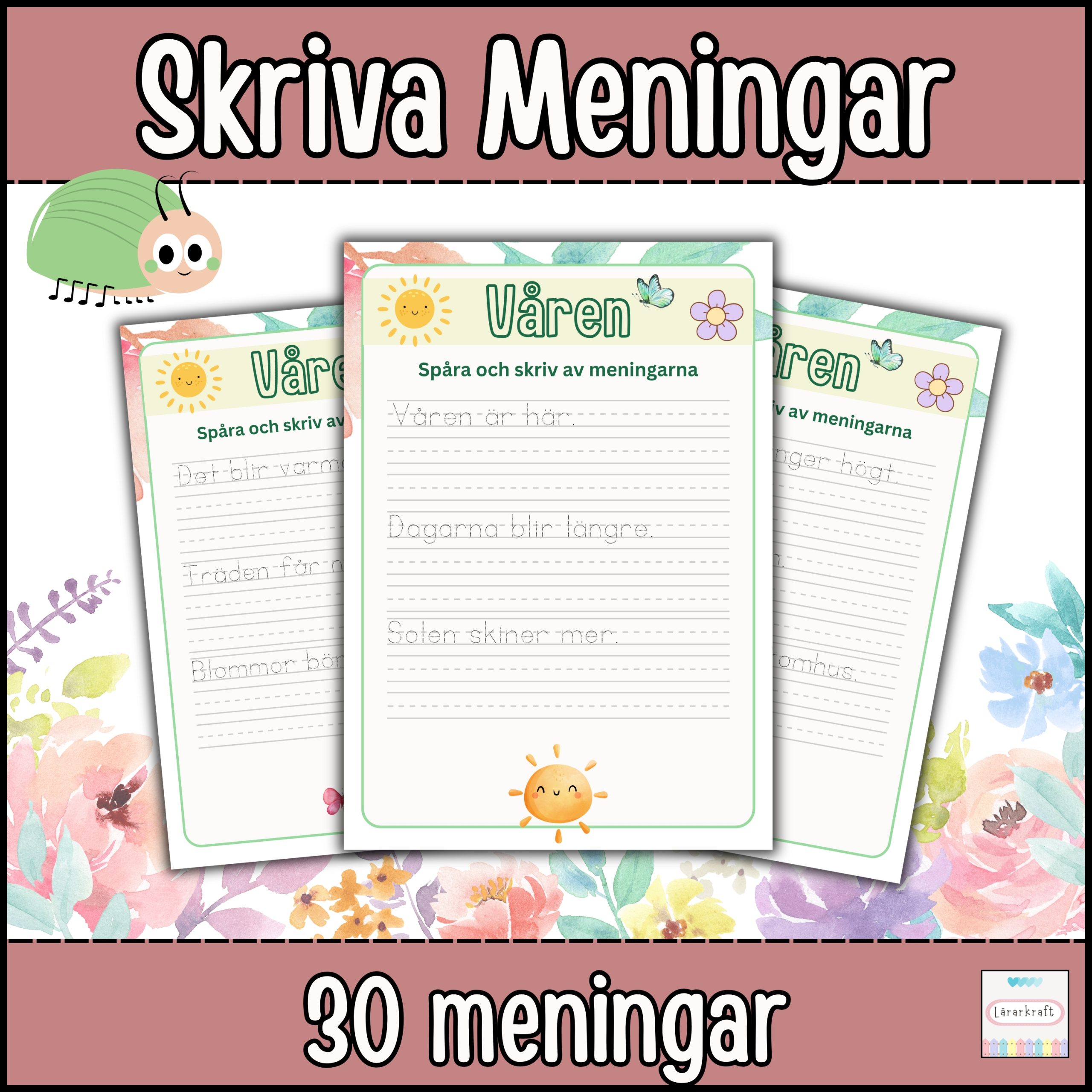 Tema: Våren Spåra och skriva 30 meningar öva på ordförråd, meningsbyggnad och handstil