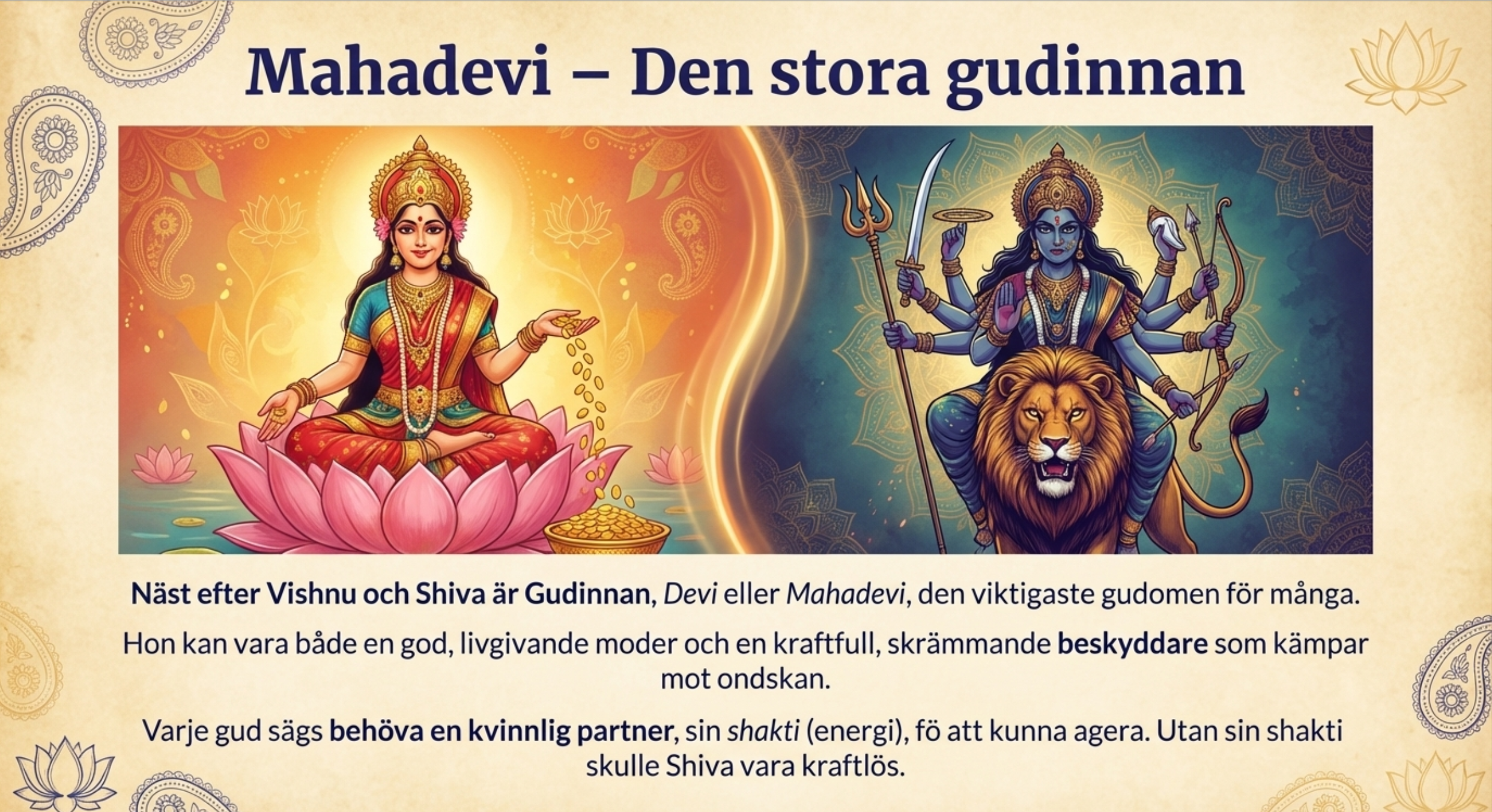 Denna PowerPoint-presentation om hinduism är ett komplett undervisningsmaterial på 16 sidor, framtaget för att ge elever en strukturerad och lättförståelig introduktion till en av världens äldsta religioner. Presentationen lämpar sig väl för undervisning i grundskolans senare år och gymnasiet inom ämnet religion.