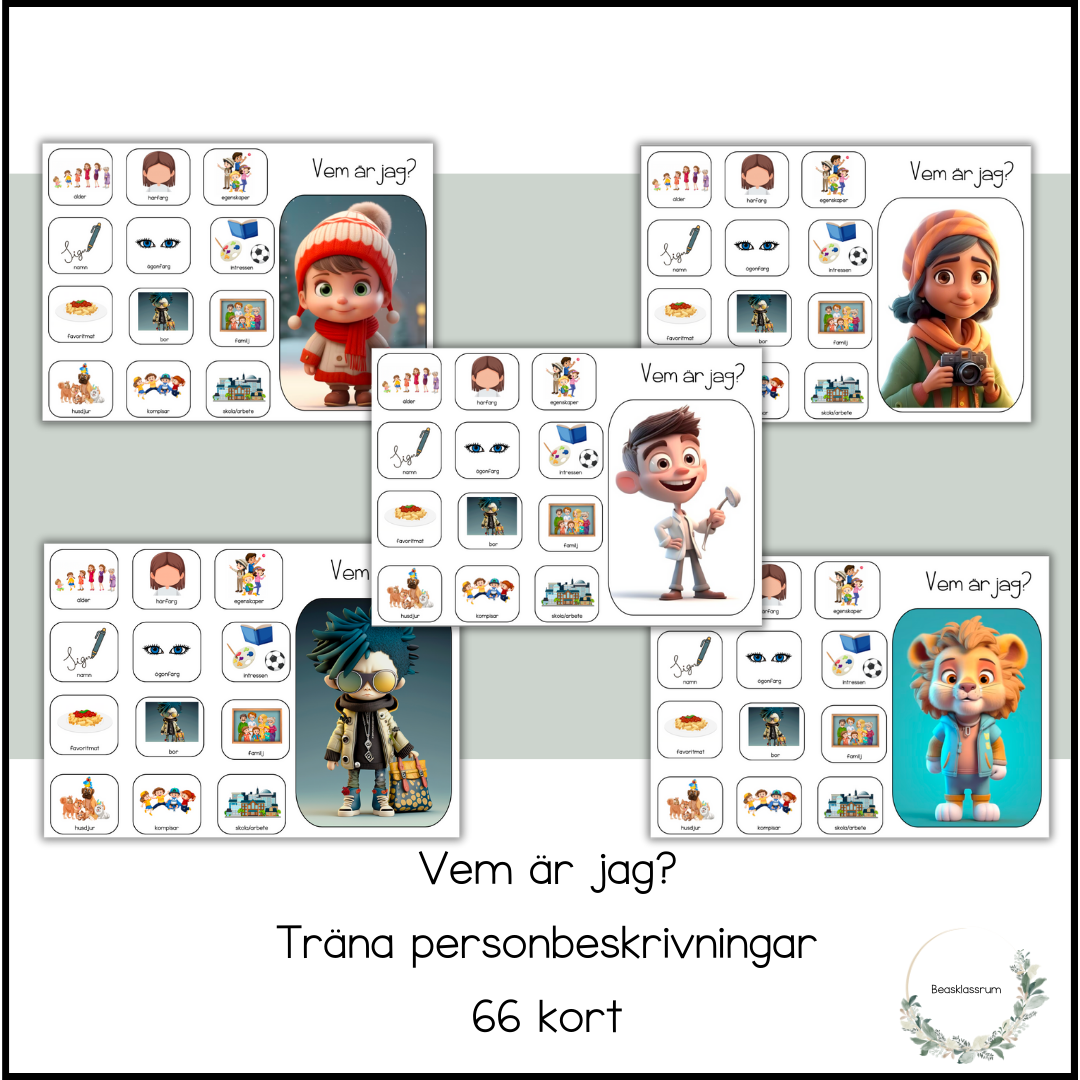 66 kort för att träna på att göra personbeskrivningar.