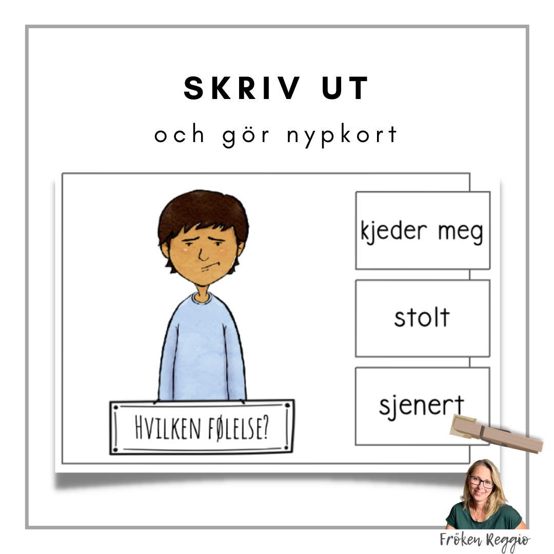 Barnen visar 16 olika känslor: 2 kort av varje känsla men med olika barn.
