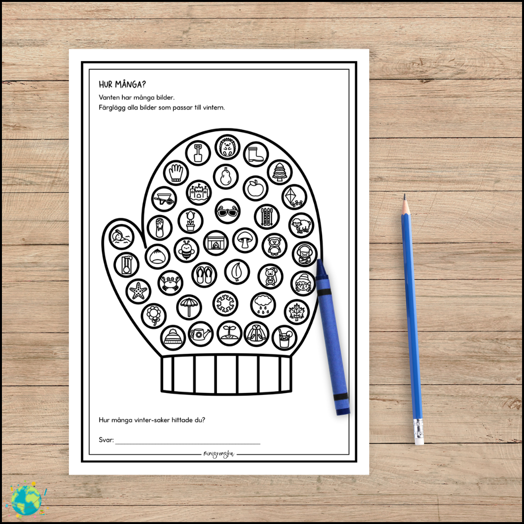 En vintermysig räkneaktivitet där barnen får leta, sortera och räkna saker som hör till vintern. Med hjälp av tydliga bilder tränas både matematik, koncentration och begreppsförståelse på ett lugnt och lekfullt sätt.
