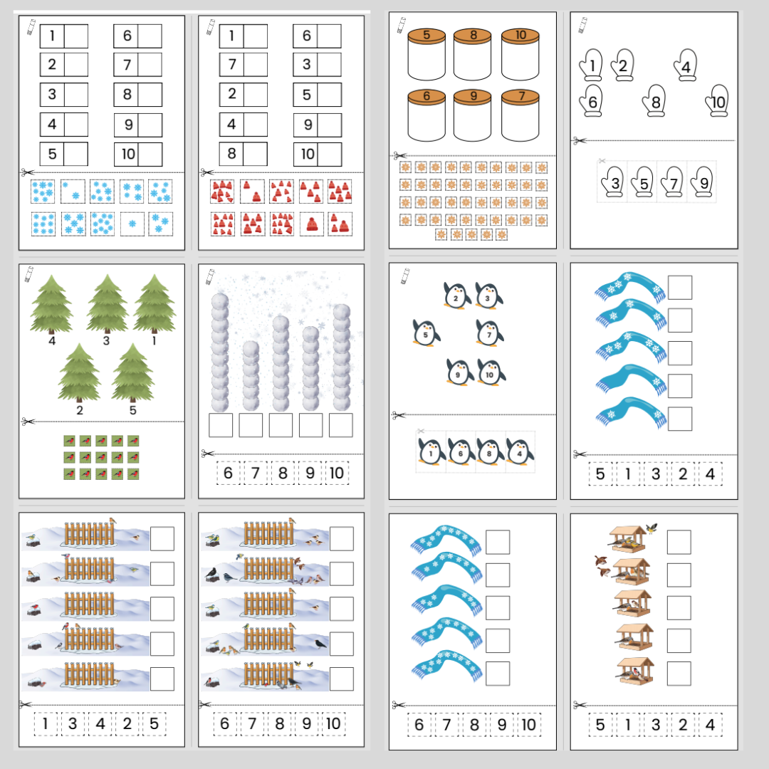 finmotorikklipp och klistraklippövningräkna till 10siffrorträna siffrorvinter