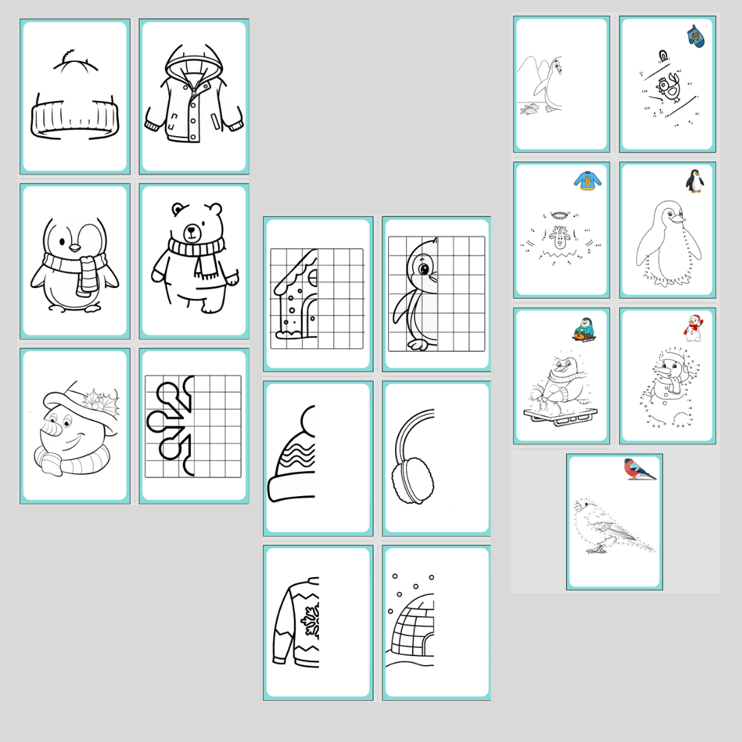 Vinterbilder, komplettera och färglägga