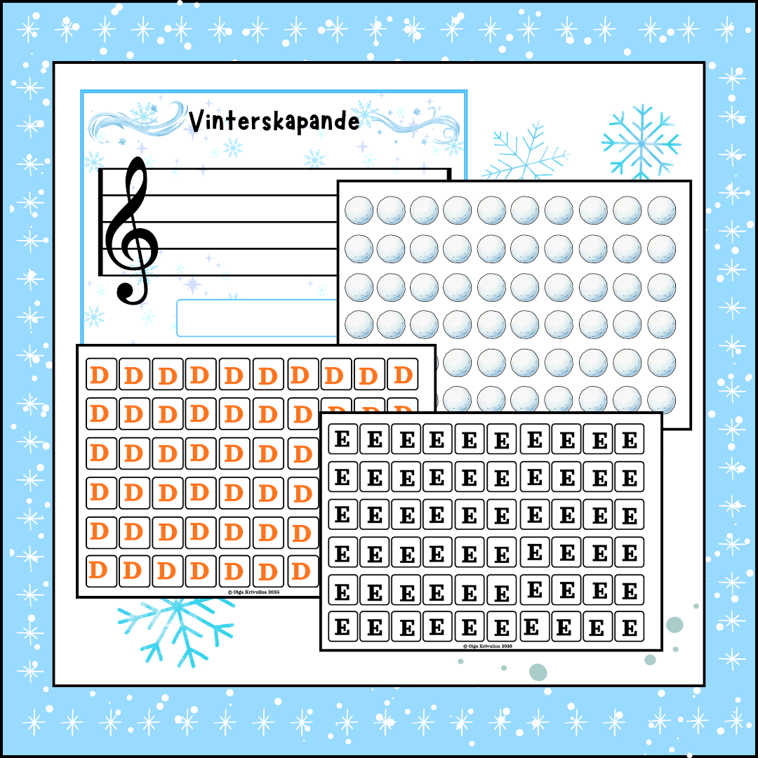 I denna uppgift får eleverna träna notläsning på ett lekfullt sätt och samtidigt skapa egna melodier med hjälp av vinterinspirerat material.