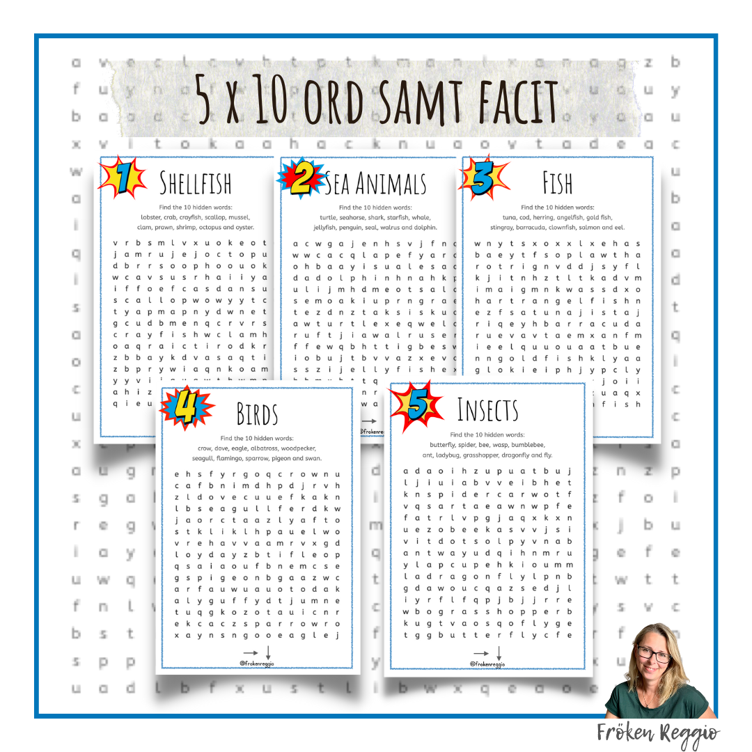 Här kommer ytterligare ett ordsök, denna gång i kategorierna ”Sea animals, birds & Insects”.