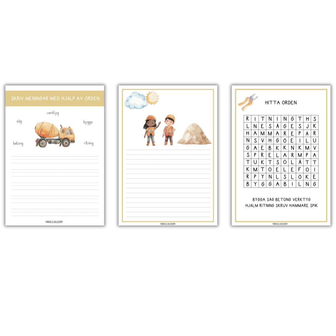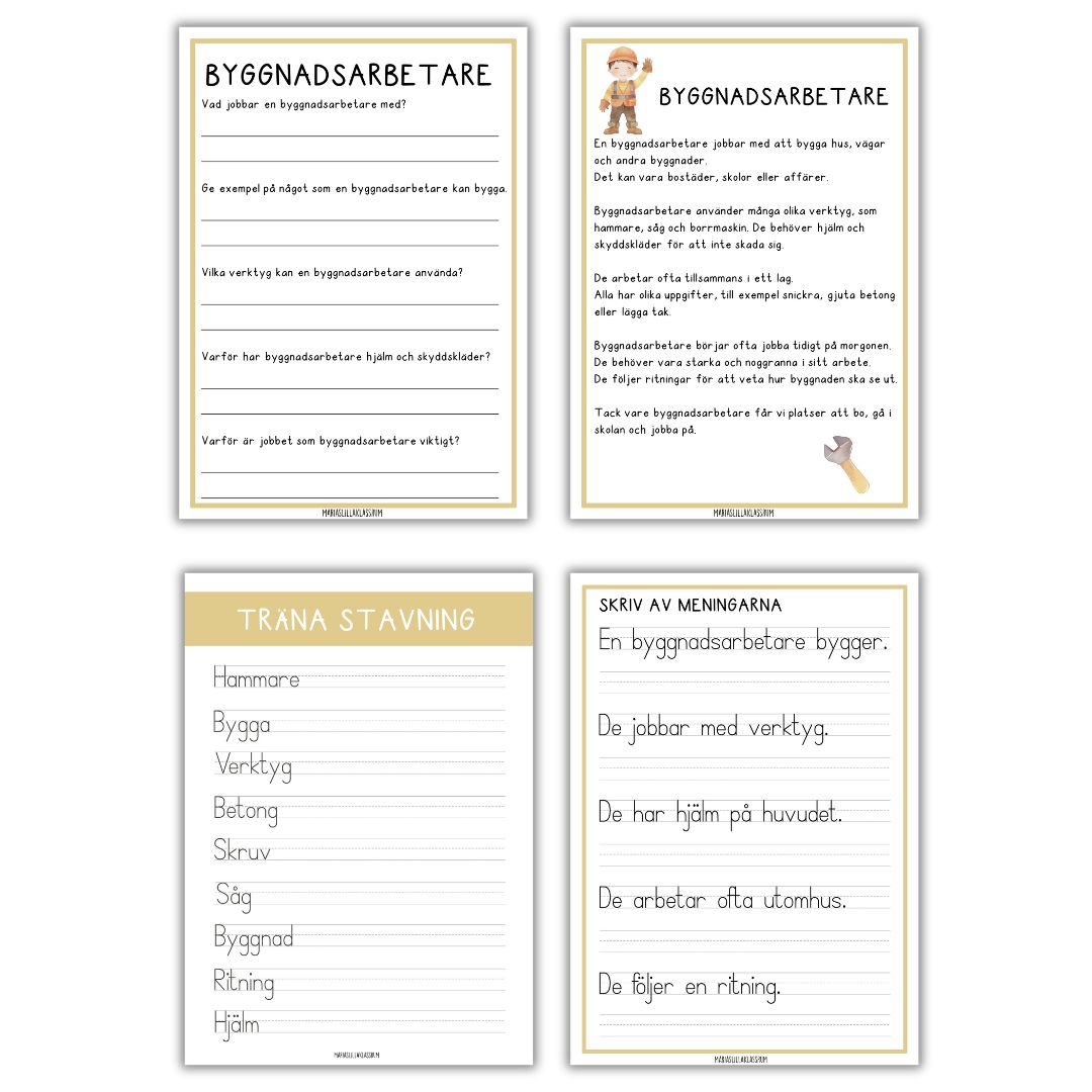 det här arbetshäftet lär vi oss mer om yrket byggnadsarbetare.